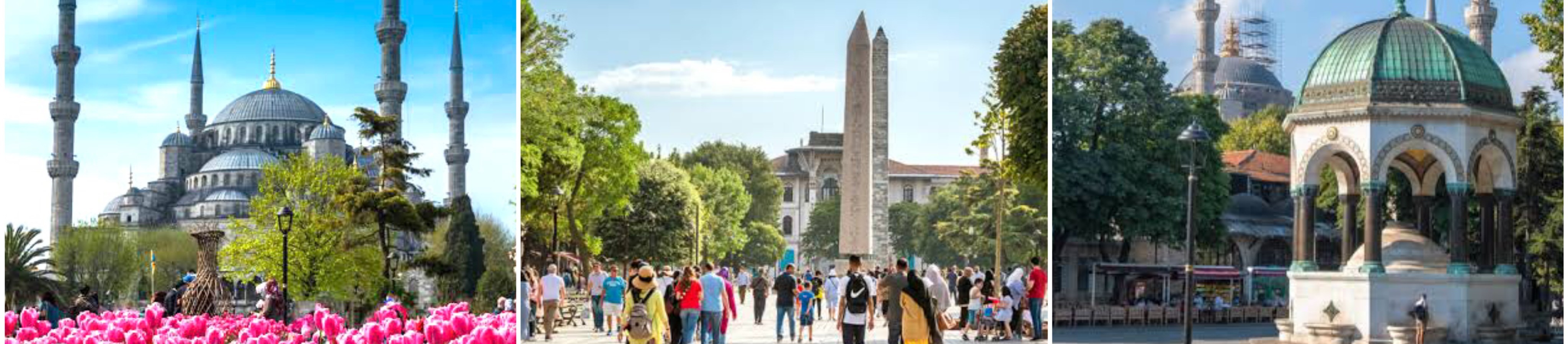 (Image Pictures) Left: Blue Mosque, Middle: Hippodorome, Right: German Fountain