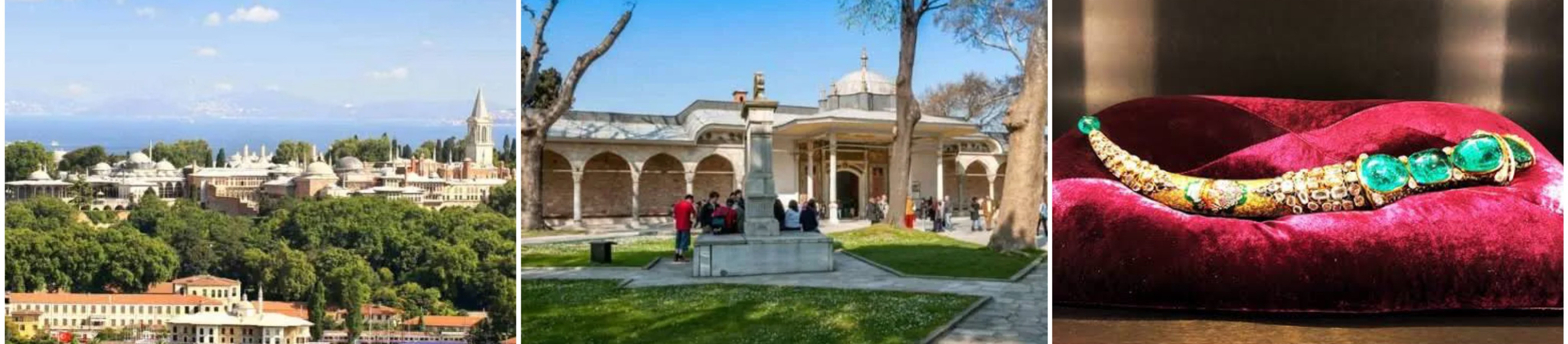 (Image Pictures) Left: Topkapi Palace, Middle: Second Court of Topkapi Palace, Right: Topkapi Dagger