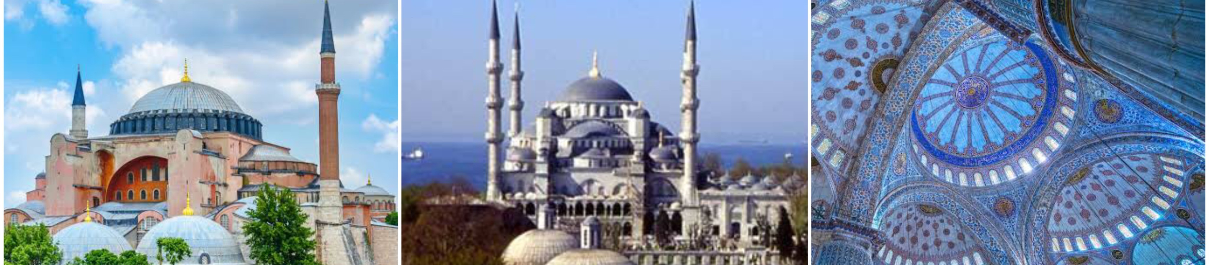(Image Pictures) Left: Hagia Sophia, Middle: Blue Mosque, Right: Interior of Blue Mosque